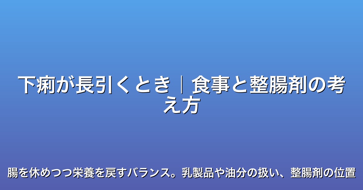 下痢が長引くとき、腸を休めつつも必要な栄養は摂る、というバランス感覚が大切です。水分補給を最優先にしながら、消化の良いものから少しずつ食事を進めていきましょう。