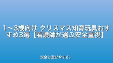 知育・おもちゃ 1〜3歳向け クリスマス知育玩具おすすめ3選【看護師が選ぶ安全重視】 1〜3歳向けクリスマス知育玩具の選び方を小児科看護師×子育て中の親が解説。安全性を重視した「くもん くるくるチャイム」「ボーネルンド ルーピング」「アンパンマン ことばずかん」の3選と、年齢別の発達目安、使い方のコツ、誤飲などの注意点をご紹介します 2025.11.03 知育・おもちゃ