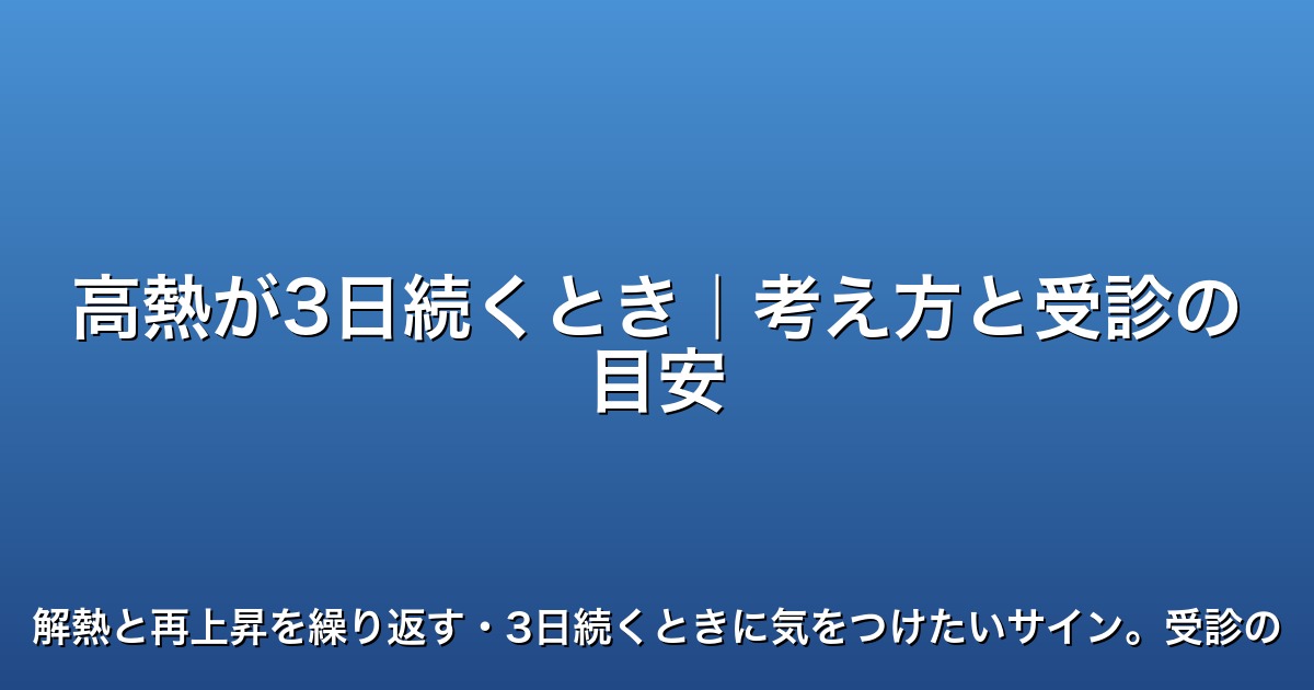 今回は高熱が3日続くときの考え方と、受診すべきタイミングについて整理してみましょう。