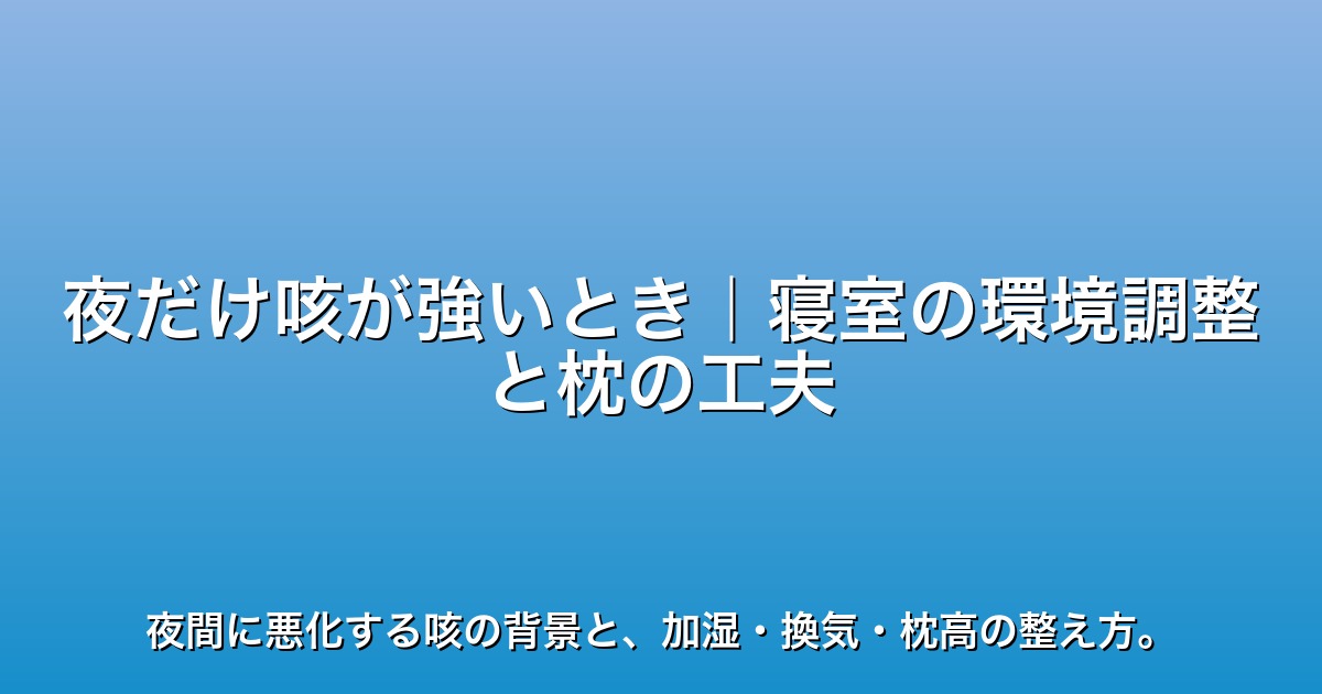 夜間の咳は見ていてつらいですが、環境を整えることで楽になるケースも多いです。まずは湿度と室温、そして寝る姿勢を見直してみてください。それでも心配なときは、遠慮せず医療機関に相談してくださいね!